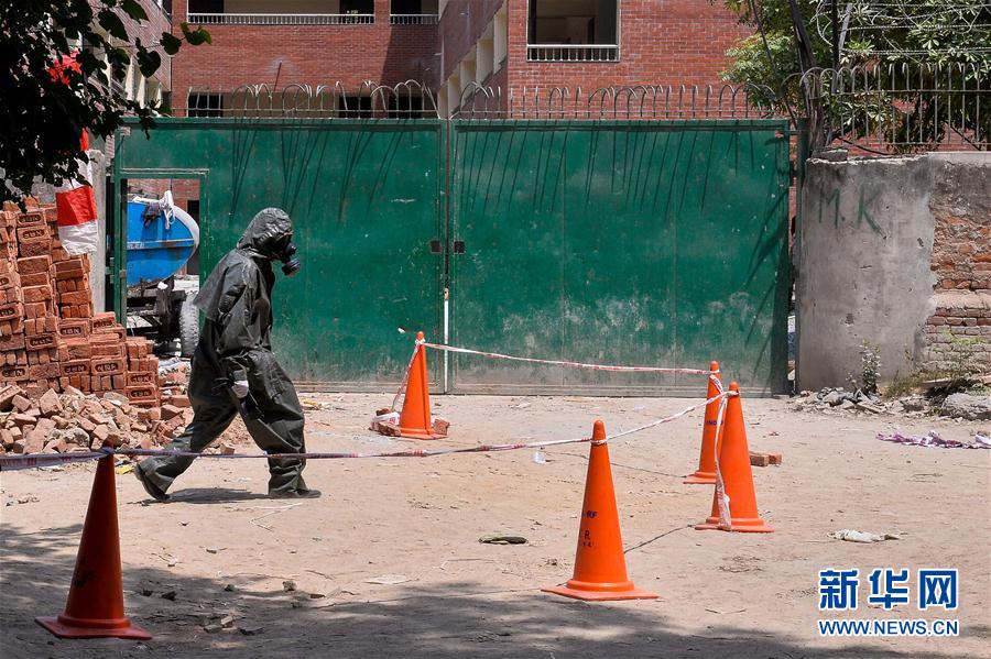 5月6日,在印度新德里,一名印度全國(guó)救災(zāi)應(yīng)急部隊(duì)成員在煤氣泄漏事故發(fā)生地附近的學(xué)校檢查。據(jù)警方人員稱,新德里6日發(fā)生煤氣泄漏事故,約有200名學(xué)生出現(xiàn)不同程度的中毒癥狀入院治療。新華社/法新