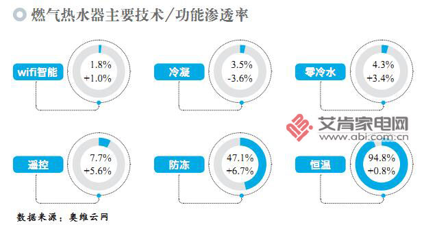 而在前沿技術(shù)中,致力于節(jié)能、環(huán)保的“冷凝”技術(shù)在2017年漸失市場話語權(quán),更貼合用戶實(shí)際需求的“零冷水”技術(shù),成為了高端燃?xì)鉄崴鞯拇硇援a(chǎn)品。官方數(shù)據(jù)顯示, 2017年以來,“零冷水”產(chǎn)品的在售型號(hào)不到60款,占整體燃熱型號(hào)的1.3%,但其零售額占比卻達(dá)到5.6%,在很大程度上帶動(dòng)了燃?xì)鉄崴魇袌鱿蚋叨嘶较虬l(fā)展。