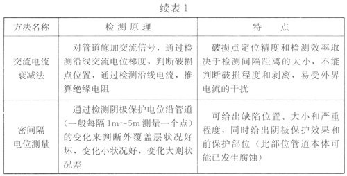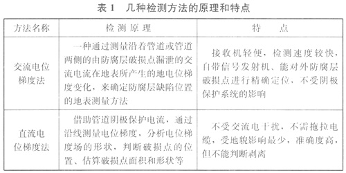 4.3.1表4.3.1管道防腐層缺陷評(píng)價(jià)參考了《鋼制管道及儲(chǔ)罐腐蝕評(píng)價(jià)標(biāo)準(zhǔn) 埋地鋼質(zhì)管道外腐蝕直接評(píng)價(jià)》SY/T 0087.1中的表4.0.7。幾種檢測(cè)方法介紹如下: