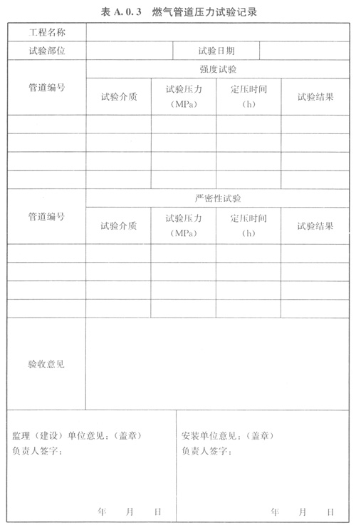 A.0.3燃氣管道壓力試驗記錄可按表A.0.3的格式記錄。