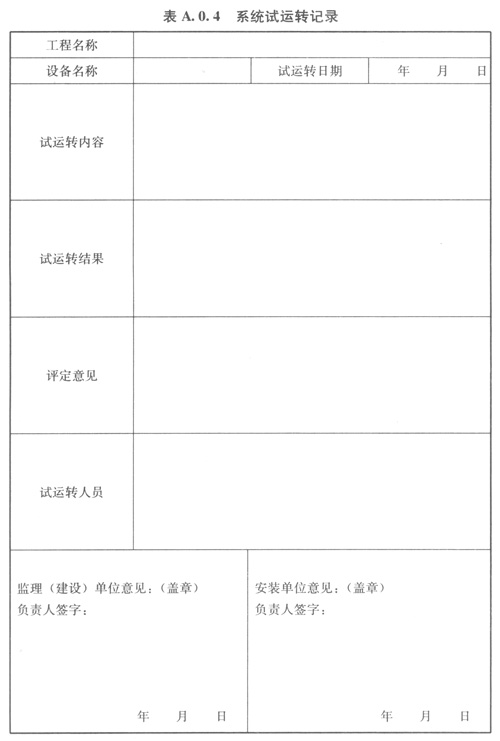 A.0.4系統(tǒng)試運轉記錄可按表A.0.4的格式記錄。