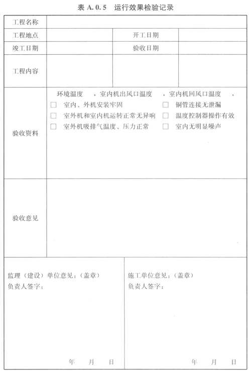 A.0.5運行效果檢驗記錄可按表A.0.5的格式記錄。