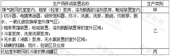 表B-1煤氣凈化車間主要生產(chǎn)場所生產(chǎn)類別