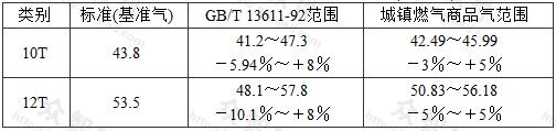 表2 10T和12T天然氣華白數(shù)波動(dòng)范圍(MJ/m3)