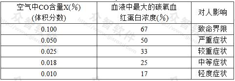 表5空氣中不同的CO含量與血液中最大的碳氧血紅蛋白濃度的關(guān)系