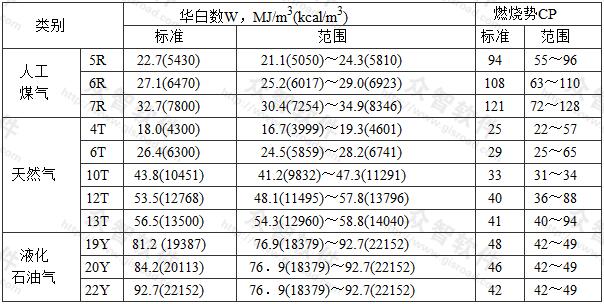 現(xiàn)行的國(guó)家標(biāo)準(zhǔn)《城市燃?xì)夥诸悺稧B/T13611,詳見表1(華白數(shù)按燃?xì)飧甙l(fā)熱量計(jì)算)。
