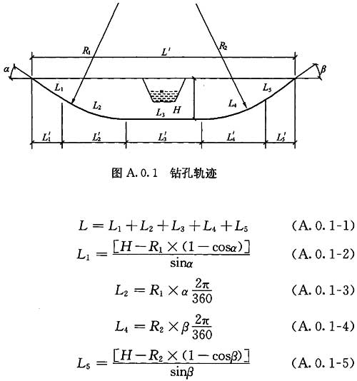 A.0.1 水平定向鉆軌跡長度(圖A.0.1)可按下列公式計(jì)算:
