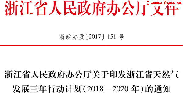 浙江省天然氣發(fā)展三年行動(dòng)計(jì)劃(2018-2020年)