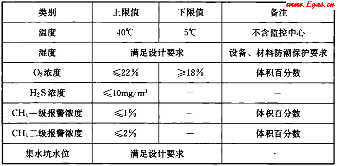 5.6.4 環(huán)境與設(shè)備監(jiān)控系統(tǒng)環(huán)境參數(shù)檢測內(nèi)容、報(bào)警設(shè)定值應(yīng)符合現(xiàn)行國家標(biāo)準(zhǔn)《城鎮(zhèn)綜合管廊監(jiān)控與報(bào)警系統(tǒng)工程技術(shù)標(biāo)準(zhǔn)》GB/T 51274和《密閉空間作業(yè)職業(yè)危害防護(hù)規(guī)范》GBZ/T 205的規(guī)定。主要環(huán)境參數(shù)報(bào)警設(shè)定值應(yīng)符合表5.6.4的規(guī)定。