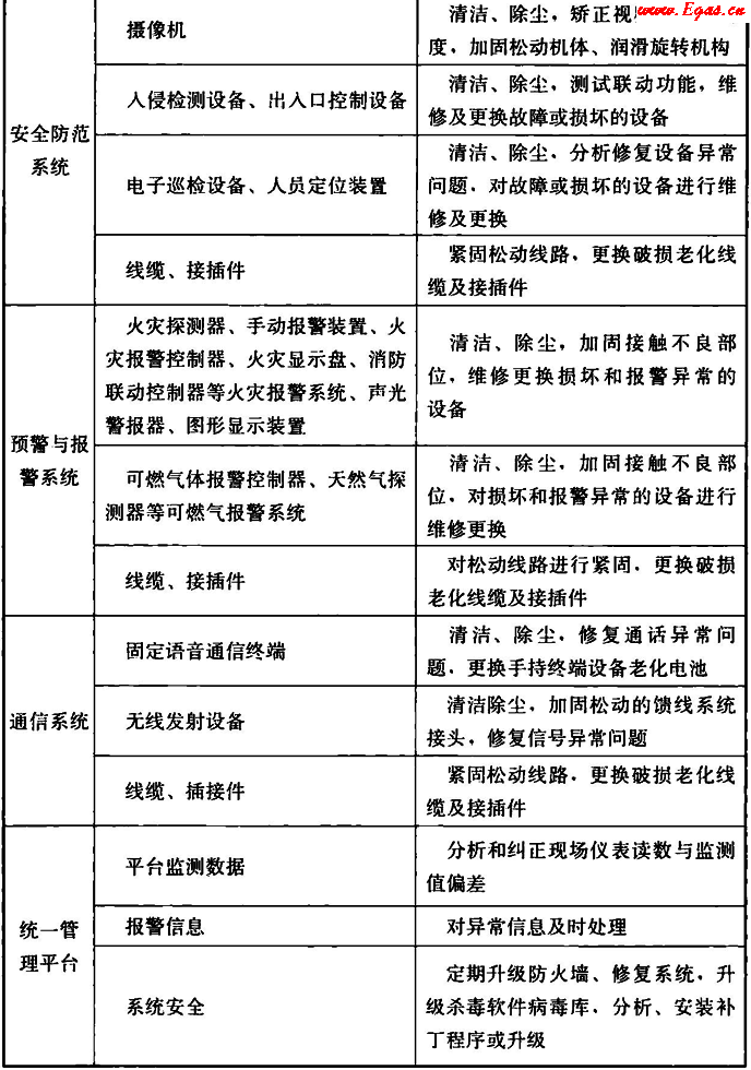 表B 監(jiān)控與報警系統(tǒng)維護主要內(nèi)容