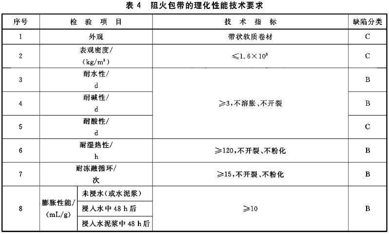 5.3.3 阻火包帶的理化性能應(yīng)符合表4的規(guī)定。