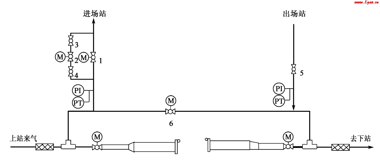 (2)越站流程——天然氣通過(guò)越站閥直接向下游供氣。