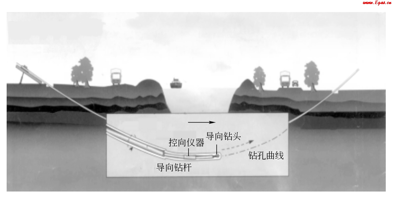 定向鉆法是一種經(jīng)濟實用,可以做到管道埋深達(dá)到安全可靠目的的敷管方法,宜作為管道穿越的第一優(yōu)選方法。定向鉆的優(yōu)點為:對地表的干擾較?。皇┕に俣瓤?;可控制鋪管方向,施工精度高。定向鉆的不足之處在于對施工場地要求較高,在礫石層中施工比較困難,一般不適用于成孔困難的地層。