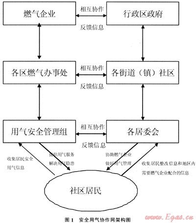 (3) 簽訂合作協(xié)議,確保管理架構(gòu)的有效性。為了確保協(xié)作網(wǎng)管理架構(gòu)的有效性,防止協(xié)作網(wǎng)工作流于形式,在建網(wǎng)過程中,要分級(jí)簽訂合作協(xié)議,即燃?xì)馄髽I(yè)要與各區(qū)政府部門、燃?xì)廪k事處要與各街道(鎮(zhèn))簽訂相應(yīng)合作協(xié)議,明確雙方責(zé)任、義務(wù)、人員、分工和主要工作內(nèi)容等。