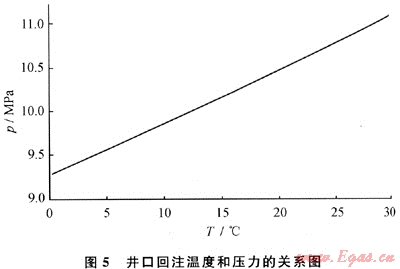 在這種情況下,由于壓力較低,在整個井筒酸氣為氣相,回注壓力受溫度分布的影響不大。