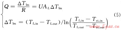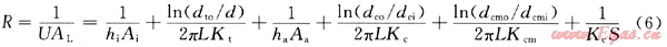 該熱交換的總傳熱系數(shù)和熱阻可由式(6)計算: