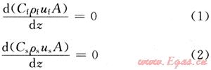 由假設(shè)條件可知,泡沫和巖屑在環(huán)空中流動(dòng)的連續(xù)性方程為: