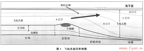 地質(zhì)學(xué)家已對(duì)礁灘特征、分布、控制因素等作過(guò)較為深入的研究,并取得了顯著的進(jìn)展[1~4],鮞灘儲(chǔ)層的發(fā)育與沉積前的古地貌關(guān)系密切[2,5~6]。但以前的研究都是針對(duì)局部區(qū)域或某一層段,利用鉆井資料來(lái)進(jìn)行預(yù)測(cè)。隨著勘探的深入,需要從整體上來(lái)把握鮞灘儲(chǔ)層的發(fā)育規(guī)律。因此,筆者通過(guò)地震層序的研究,分析整個(gè)四川盆地飛仙關(guān)組鮞灘儲(chǔ)層分布規(guī)律及其主控因素,研究飛仙關(guān)組不同時(shí)期的臺(tái)緣帶朝海槽方向的遷移規(guī)律,預(yù)測(cè)不同時(shí)期的古地貌,有針對(duì)性地在古高地或臺(tái)緣帶尋找勘探有利區(qū),為后期的油氣勘探及開(kāi)發(fā)提供有益的思路。結(jié)合以往的研究成果,飛仙關(guān)組鮞灘儲(chǔ)層發(fā)育主要形成于晚期高位域。因此識(shí)別出晚期高位域特征是尋找高能鮞灘儲(chǔ)層的關(guān)鍵。
