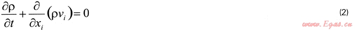 在通用微分方程中,設(shè)特性量Φ=1,并且在流體中不存在質(zhì)量源或匯,即SΦ=0時(shí),方程(1)就成為連續(xù)性方程: