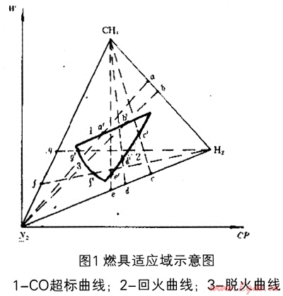 開發(fā)設(shè)計燃具時,首先要決定使用某類燃?xì)?。根?jù)某類燃?xì)獾幕鶞?zhǔn)氣[1]設(shè)計、生產(chǎn)后按照基準(zhǔn)氣及界限試驗氣的要求(包括壓力)調(diào)整檢驗出廠。當(dāng)燃?xì)庑再|(zhì)(成分)發(fā)生變化時,其工作狀態(tài)必然改變。如果燃?xì)獬煞肿兓谀骋唤缦薹秶鷥?nèi),它仍能保持正常工作。這就是燃具對燃?xì)獬煞肿兓倪m應(yīng)能力,稱為燃具的適應(yīng)性。每個燃具都有一定的適應(yīng)能力。量化這個適應(yīng)能力,可以用燃具適應(yīng)燃?xì)獬煞肿兓姆秶鷣肀硎?。適應(yīng)燃?xì)獬煞肿兓姆秶鷧^(qū)間稱為燃具適應(yīng)域。適應(yīng)域的范圍越寬,表示燃具的適應(yīng)燃?xì)鈿赓|(zhì)變化的能力越強[2]。