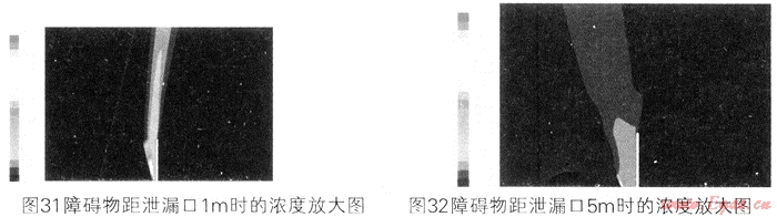 障礙物高度:為20m,距離泄漏口1m、5m時(shí)白勺天然氣噴射情況如下圖。