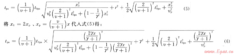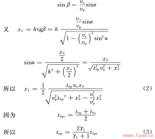 對(duì)于水平反射層,轉(zhuǎn)換波的時(shí)距方程可寫(xiě)為:
