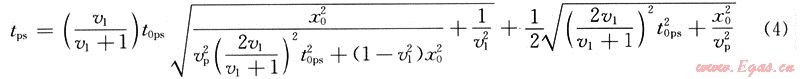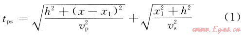 式中:tps為PS波的旅行時(shí);vp為P波傳播速度;vs為橫波傳播速度。