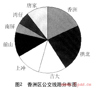 珠海市公交線路主要由珠海市公共汽車公司及珠海信禾西部公共汽車有限公司兩家公司經(jīng)營。珠海市公共汽車公司公交線路共有59條,車輛1000多臺。其中在香洲區(qū)內(nèi)行駛的線路有48條,其余11條線路連接香洲區(qū)與另外兩市轄區(qū);珠海信禾西部公共汽車有限公司共有公交線路45條,車輛350多臺,主要營運在斗門區(qū)、金灣區(qū)兩區(qū),其中約40%的線路用于連接香洲區(qū)與另外兩市轄區(qū)。綜合上述數(shù)據(jù)可見,珠海市超過80%的公交線路營運或經(jīng)過香洲區(qū)。香洲區(qū)的公交線路主要集中于香洲、拱北、吉大、上沖、前山、灣仔、唐家及南屏,具體分布詳見圖2。