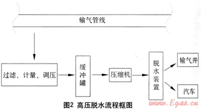 (2) 站址靠近高壓管線,對于燃?xì)夤?yīng)系統(tǒng)來說,壓力就是財富,可以充分利用高壓管線壓力,從高壓系統(tǒng)中取氣壓縮。由于市政管道內(nèi)天然氣氣質(zhì)良好,而且壓力相對較高,此情況下高壓脫水、低壓脫水均可采用,具體視項目實際情況確定。