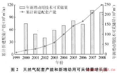 10年來,新建成沙坪場(chǎng)等15個(gè)新氣田,新增配套產(chǎn)能74×108m3/a;優(yōu)化調(diào)整老區(qū)補(bǔ)充產(chǎn)能建設(shè),有效彌補(bǔ)了老氣田產(chǎn)能,新增配套產(chǎn)能45.5×108m3/a。新老區(qū)共計(jì)新增配套產(chǎn)能119.5×108m3/a,新增動(dòng)用可采儲(chǔ)量1355×108m3(如圖2)。