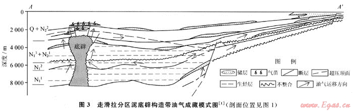 該區(qū)目前油氣勘探主要集中在盆地中部中央泥底辟帶淺層。泥底辟構(gòu)造帶存在上、下2套大的含油氣系統(tǒng)。淺層氣田的形成與泥底辟發(fā)育密切相關(guān),盡管單個(gè)氣田(藏)的天然氣儲(chǔ)量并非都是大型的,但氣田在平面上成群成帶分布,縱向上每個(gè)氣田都存在多個(gè)氣藏疊合,縱向疊合、橫向連片仍可形成較大規(guī)模儲(chǔ)量,采取中、小型氣田聯(lián)合開發(fā)可獲較好的經(jīng)濟(jì)效益。