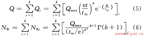 據(jù)翁文波的理論[1],筆者將天然氣產(chǎn)量從上升到頂峰再到下降的過程定義為一個(gè)產(chǎn)量循環(huán)。按照產(chǎn)量循環(huán)的個(gè)數(shù),可以將天然氣產(chǎn)量預(yù)測(cè)模型分為單循環(huán)模型和多循環(huán)模型。以往多運(yùn)用單循環(huán)模型,包括Hubbert模型[2]、廣義翁氏模型[3]、HCZ模型[4]等。但對(duì)于存在多個(gè)產(chǎn)量循環(huán)的油氣田而言,單循環(huán)模型存在預(yù)測(cè)產(chǎn)量與歷史產(chǎn)量擬合程度比較低,預(yù)測(cè)的最終可采儲(chǔ)量誤差比較大等問題。Al-Fattah和Startzman[5]通過對(duì)實(shí)際生產(chǎn)數(shù)據(jù)的分析,指出多產(chǎn)量循環(huán)在天然氣生產(chǎn)中廣泛存在,并運(yùn)用改進(jìn)的Hubbert模型對(duì)主要國(guó)家的天然氣產(chǎn)量進(jìn)行了預(yù)測(cè)。筆者在吸取國(guó)內(nèi)外經(jīng)驗(yàn)的基礎(chǔ)上,結(jié)合國(guó)內(nèi)外天然氣生產(chǎn)實(shí)際,建立了適合我國(guó)天然氣產(chǎn)量預(yù)測(cè)的多循環(huán)模型。
