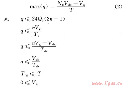 將日平均周轉(zhuǎn)量(q)帶入式(1),將其轉(zhuǎn)換為日平均周轉(zhuǎn)量的極值問題: