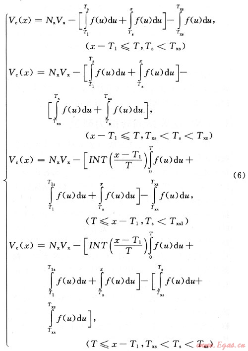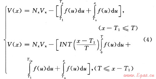 式中V(x)為任意時(shí)刻LNG接收站庫(kù)存水平,m3;Nx為L(zhǎng)NG運(yùn)輸船量,m3;T1為第一次運(yùn)輸船卸船開始時(shí)刻;Ts為所求時(shí)刻所屬“季節(jié)”期起始時(shí)刻;T1z為第一次運(yùn)輸船卸船開始時(shí)刻所屬季節(jié)期的終止時(shí)刻。