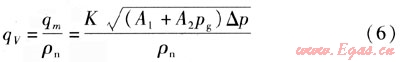 將數(shù)據(jù)qV=3000m3/h,ρn=1.293kg/m3,L=273.15K,pg=5kPa,p0=100kPa,pn=101.32kPa,t=20℃,△p=0.74377kPa代入式(12),可求得:K=4025.3021。
