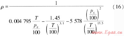 過(guò)熱蒸汽不同于理想氣體,不能通過(guò)理想氣體狀態(tài)方程來(lái)計(jì)算其密度,只能用以溫度和壓力為自變量的近似公式來(lái)計(jì)算其密度。式(16)是過(guò)熱蒸汽密度計(jì)算式之一[9]41。