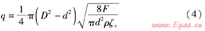 由式(5)可得到流體質(zhì)量流量qm的計(jì)算式為: