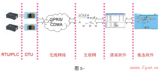 對(duì)城市燃?xì)獯笥脩?、管網(wǎng)不利點(diǎn)、區(qū)域計(jì)量站等實(shí)時(shí)性要求不高的站點(diǎn)一般采用CDMA X1/GPRS 無(wú)線通信方式,無(wú)線通信優(yōu)點(diǎn)是運(yùn)行費(fèi)用低,但通信實(shí)時(shí)性、通信網(wǎng)絡(luò)穩(wěn)定性和可靠性都不高。為了解決無(wú)線通信軟件缺陷,可以通過(guò)開(kāi)發(fā)多功能通信軟件來(lái)彌補(bǔ)無(wú)線通信實(shí)時(shí)性和穩(wěn)定性不高的缺陷。