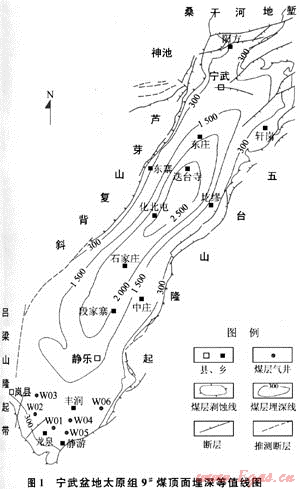 綜合以上研究,構造部位、地應力、封蓋層共同控制煤層氣的富集與保存,是寧武盆地南部煤層氣富集的主控因素,W02井以東、W04井以南地區(qū)太原組9#煤埋深小于1500m,處于應力場低值區(qū),煤層滲透性好、煤層頂?shù)装宸馍w條件好,同時處于構造上斜坡帶,利于煤層氣井高產,是煤層氣富集高產有利地區(qū)。