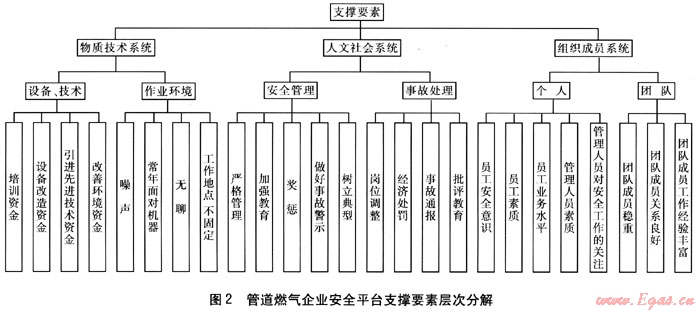 管道燃氣企業(yè)的安全平臺支撐體系的3個支撐系統(tǒng)由一系列的要素構(gòu)成。