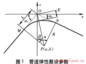 在垂直面上彈性敷設(shè)管道曲率半徑要同時滿足大于等于1000D和大于管道在自重作用下產(chǎn)生的撓度曲線的曲率半徑兩個條件。