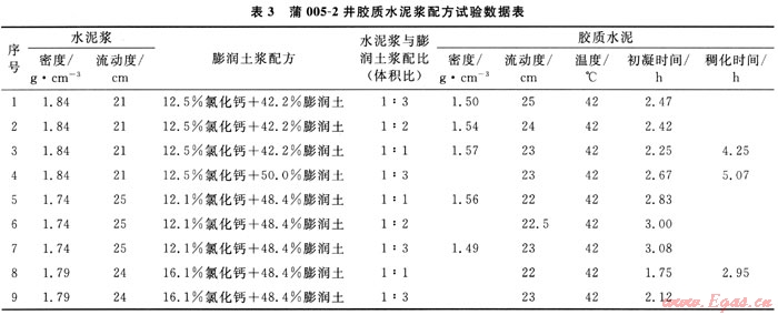 3) 膠質(zhì)水泥漿配方比例:水泥原漿:氯化鈣膨潤(rùn)土漿=1:1~1:1.5。