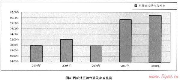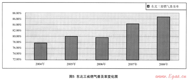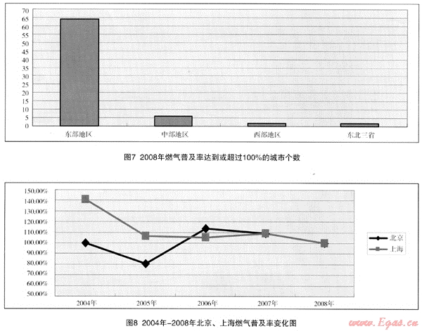 (3) 上述結(jié)論也可從以下將討論的2008年我國(guó)燃?xì)馄占奥蔬_(dá)到或超過(guò)l00%的城市狀況得出。