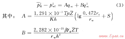 1) 當(dāng)測(cè)試流量達(dá)到相對(duì)穩(wěn)定狀態(tài)以后,不同測(cè)量時(shí)距下的re可看作不再變化,壓差(△p)也不再變化,根據(jù)二項(xiàng)式穩(wěn)定產(chǎn)能方程得: