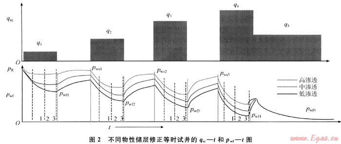 綜合這兩方面因素分析,如果測(cè)試流量過(guò)小,就會(huì)無(wú)法得出相互平行的修正等時(shí)試井產(chǎn)能曲線(xiàn),以致增大測(cè)試結(jié)果的誤差。
