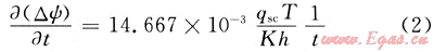;qsc為標(biāo)準(zhǔn)狀況下的測(cè)試流量,104m3/d;K為儲(chǔ)層滲透率,10-3μm2;φ為孔隙度;t為生產(chǎn)時(shí)間;μ為天然氣黏度,mPa·s;Ct為總壓縮系數(shù),1/MPa;h為有效厚度,m;Z為氣體偏差系數(shù)。將式(2)對(duì)t求導(dǎo)數(shù)可得:
