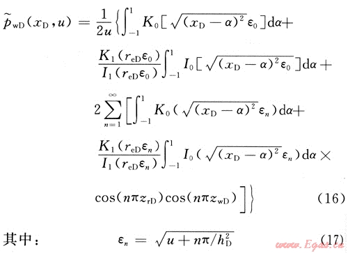 在定產(chǎn)量和定壓力兩種情況下,通過(guò)Laplace變換可分別求得生產(chǎn)井的壓力和產(chǎn)量為: