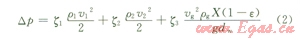 式中ζ1、ζ2、ζ3為進出口及絲網(wǎng)處的局部阻力系數(shù);ν1、ν2、νg為進出口及絲網(wǎng)處的氣體流速,m/s;ρ1、ρ2、ρ3為進出口及絲網(wǎng)處條件下的氣體密度,kg/m3;X為絲網(wǎng)層厚度,m;ε為絲網(wǎng)空隙率。