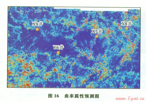 由于須三段儲(chǔ)層的重點(diǎn)勘探目標(biāo)“網(wǎng)狀裂縫”通常具有“雜亂反射”地震響應(yīng)特征,因此,可以利用多種反映地震子波橫向不穩(wěn)定性的地震屬性進(jìn)行裂縫預(yù)測(cè)(圖15、16)。