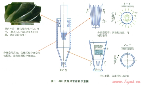 設(shè)計(jì)基本原則是在許可壓降下,為了保證高分離效率,使旋風(fēng)子截面氣速不低于